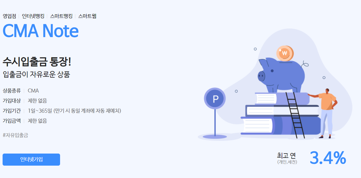 우리 WON CMA Note 는 정기예금의 높은 이자율과 수시입출금의 장점 두가지를 모두 가지고 있는 상품입니다. 아래 글에서 자세한 내용 확인해보세요.