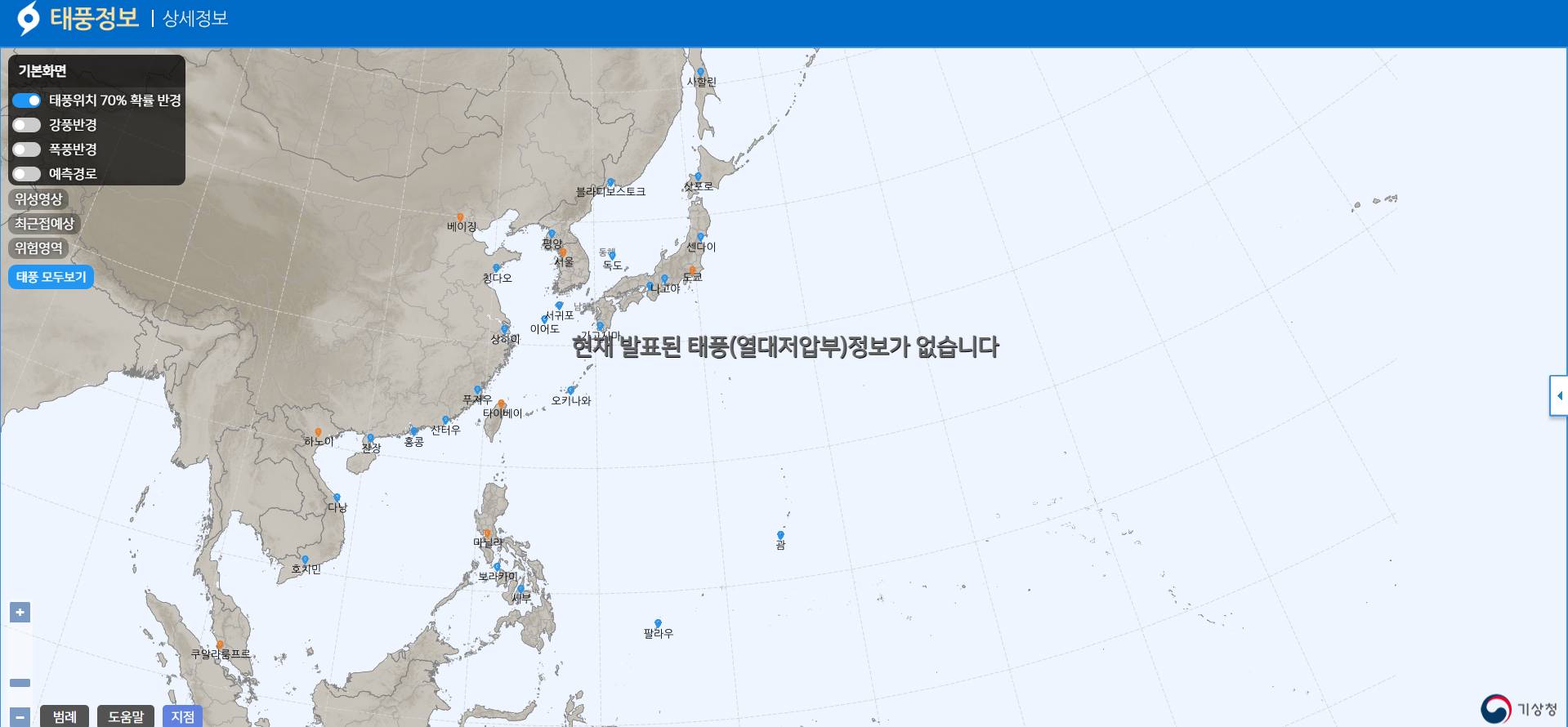 기상청 날씨누리에서는 실시간으로 태풍경로도 확인할 수 있습니다. 태풍이 오는 시점이 다가오면 현재 태풍은 어디쯤인지, 어디에 피해를 주고 있는지 확인할 수 있습니다.