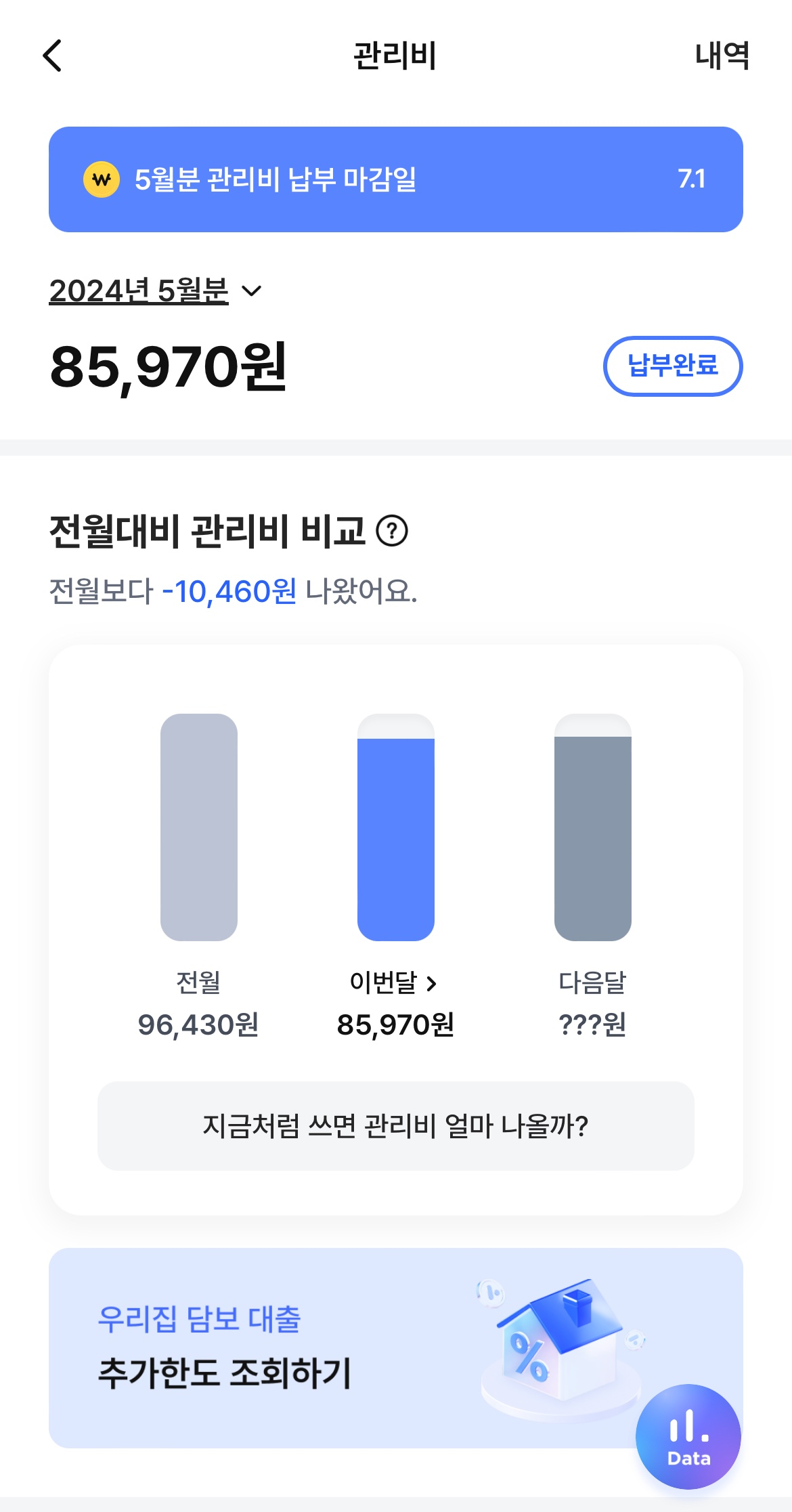- 관리비 비교 : 이웃 평균과 비교하여 우리집 관리비 한 눈에 파악