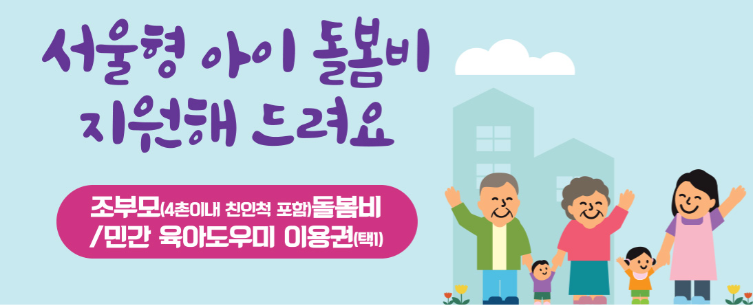 영아를 키우는 가정에서 조무보가 영아를 돌보는 경우 또는 서울시에서 지정한 민간기관의 아이돌봄서비스를 이용할 때 돌봄 비용을 지원하여 양육부담을 경감하고자 만들어진 사업입니다.