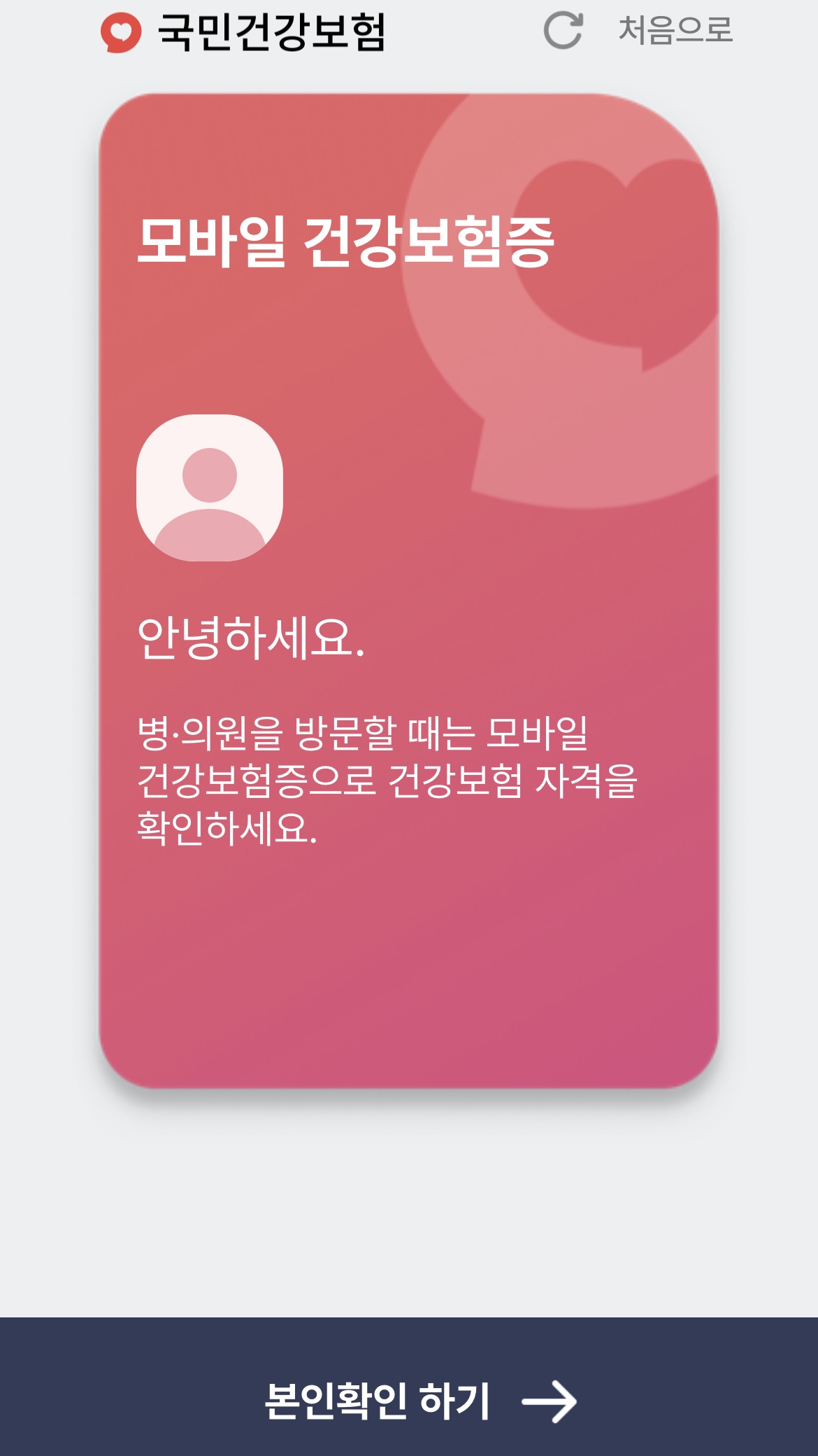 국민 건강보험공단에서 개발한 모바일 신분증 입니다. 앞으로 병원 진료 시 신분증이나 건강보험증을 지참해야 합니다.