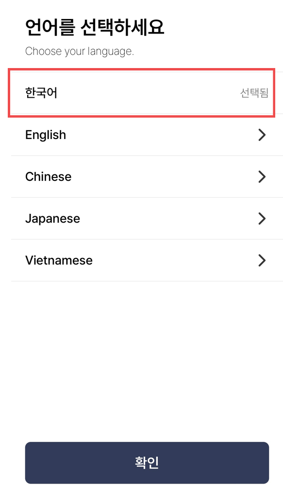 3. 한국어 선택 후 하단에 "확인" 누르기 → "다음" 버튼 연속으로 누르기