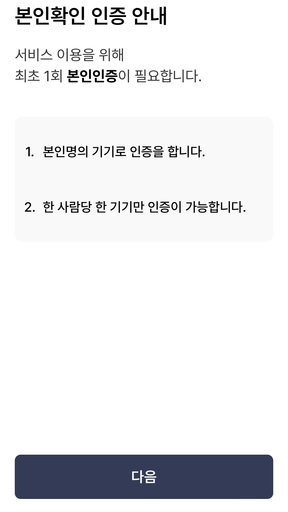 - 본인명의 기기로 인증